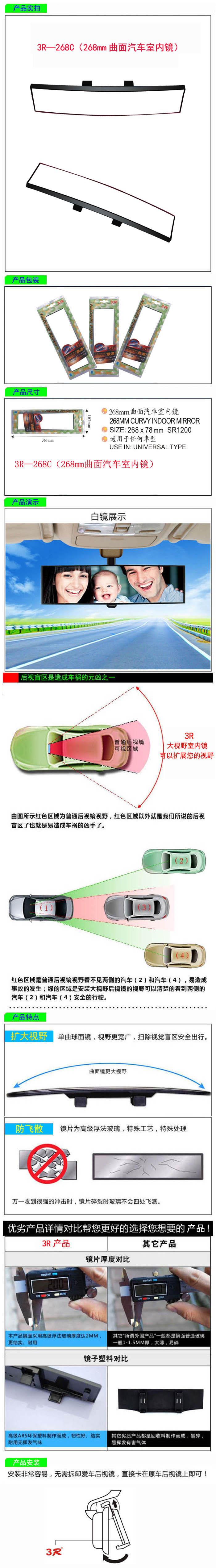 • 型號:   3R—268C(268mm曲面汽車室內鏡)