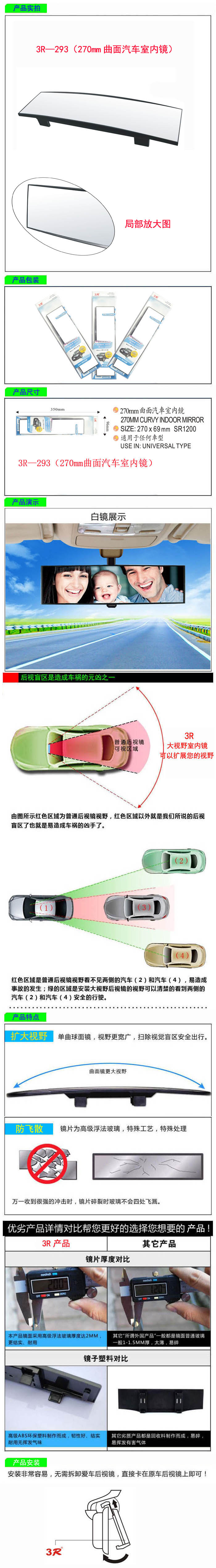 • 型號(hào):   3R—293(270mm曲面汽車室內(nèi)鏡)